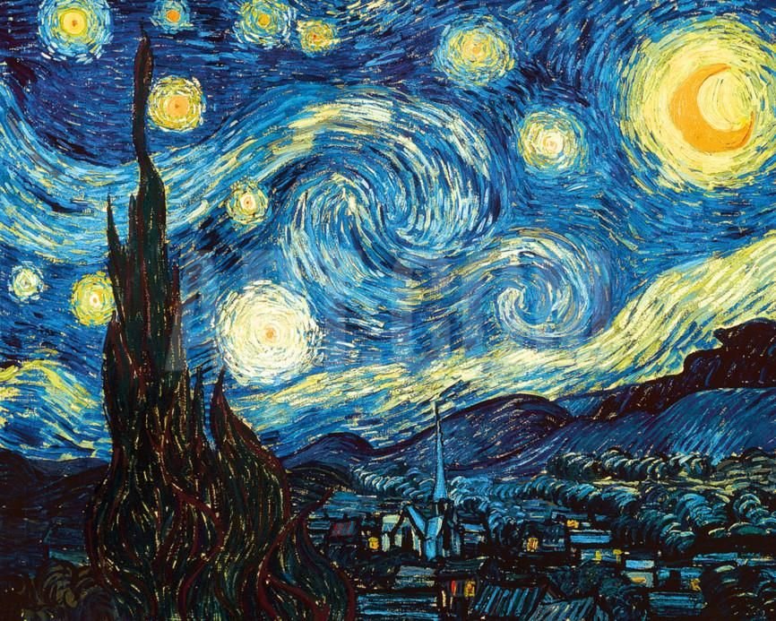 1-لوحة “ليلة النجوم” للرسام الهولندي الشهير فينسنت فان جوخ التي رسمها من خارج نافذته في مصحة عقلية عام 1889، والتي تجسد ليل مدينة سان ريمي دو بروفنس جنوب فرنسا، على الرغم من أنه رسمها في وضح النهار وقتها؛ ما يعني أن كل ما رسمه كان من ذاكرته عن تلك الليلة التي رآها.